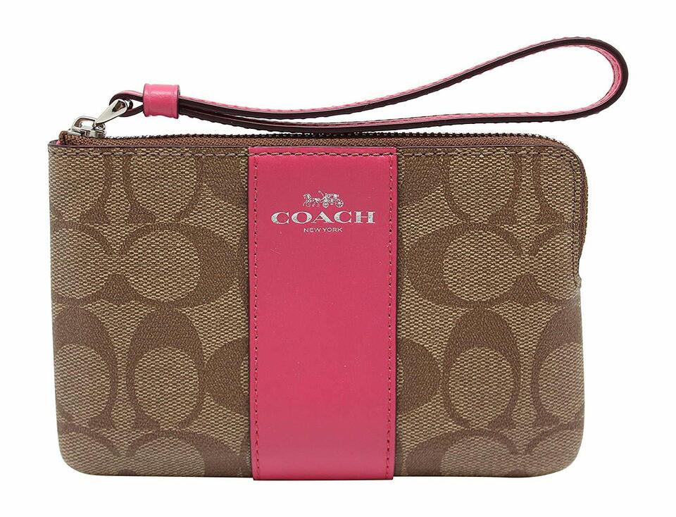 NEW COACH Signature PVC Leather Small Wristlet-Khaki/Magenta/Silver F58035