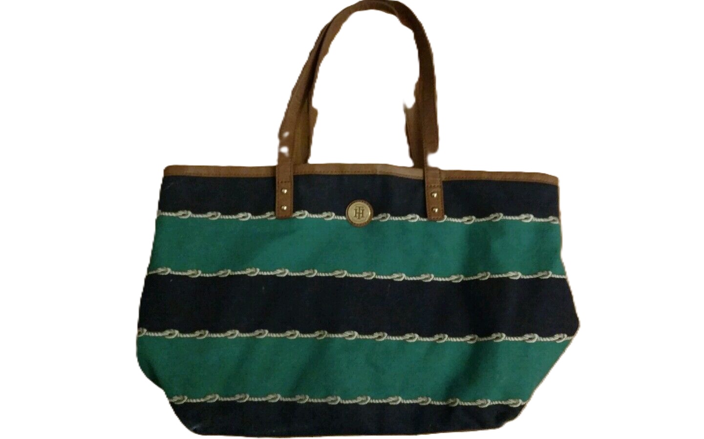 NEW Tommy Hilfiger Large Rope Canvas Tote Bag-Green/Navy