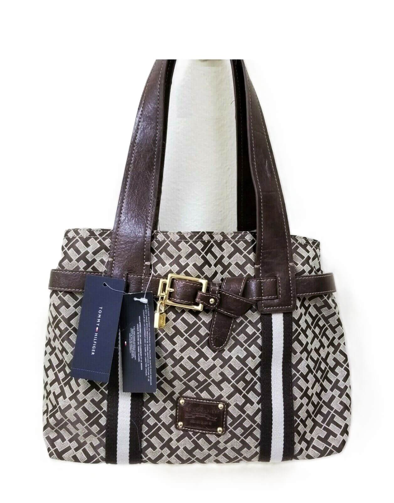 NEW Tommy Hilfiger Medium Jacquard Shopper Tote Bag-Brown/Tan