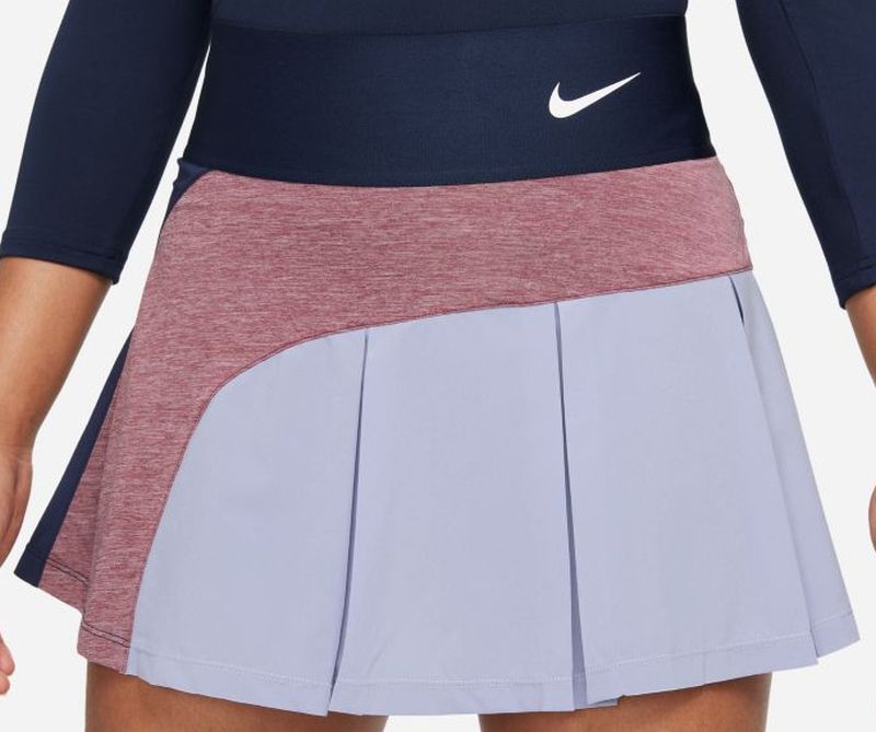 Reinvent your style with the Nike Court Advantage Tennis Skort. It’s everything you love in a classic tennis skort, plus the asymmetrical colorblocking and box pleats for a modern, chic look. The pleats create a cute flared silhouette as you move around the court, while the wide high-rise waistband offers support and comfort. You’ll love the soft built-in shortie, and the skirt’s regular, easy fit. Nike’s stretchy Flex fabric allows you to move freely around the court so you can get to the ball every time!